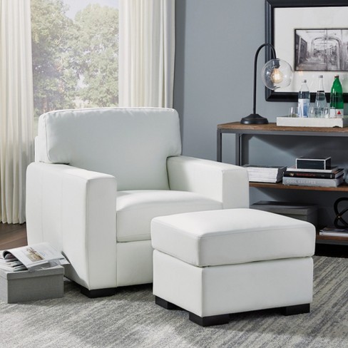 Erin Upholstered Contemporary Chair Ottoman Ivory Home Styles